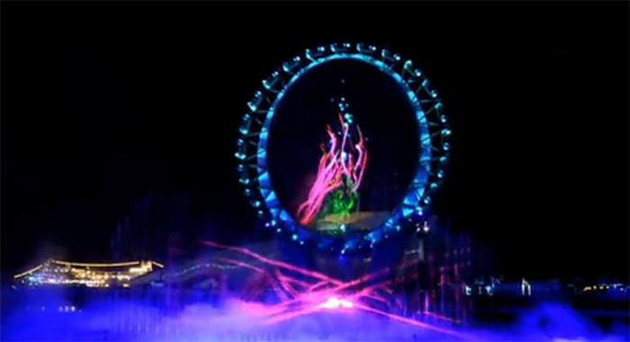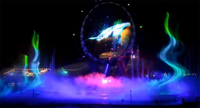 從視頻中可以看出,整個表演是以投影為主,利用投影等技術形成立體的影像。它以一個圈為主,煙霧為輔,在圈里展示各種各樣的畫面,在配上煙霧,簡直跟夢境一般,在看一場3D電影一般,這就是3D立體投影技術所帶來的演示效果。