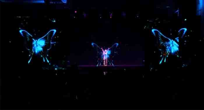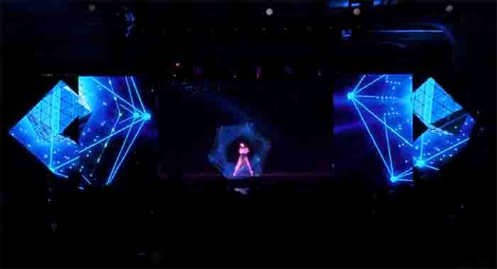 如視頻所見,在深圳美萊發布會上,采用了3D全息投影技術來增添科技感和神秘感。在舞臺上,當跳舞者做出動作時,3D全息投影技術就會根據身體擺動來發生變化,像變魔術一般。