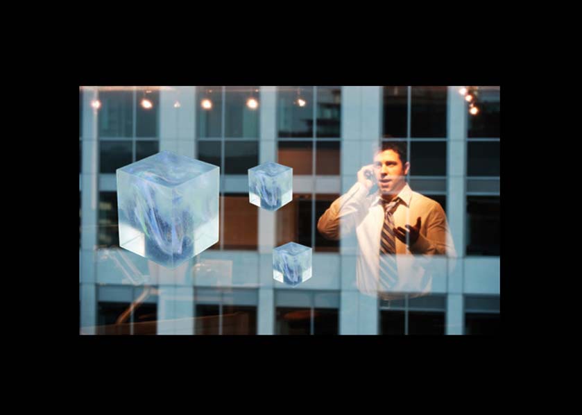 高速鏡頭,城市的人們也被吸引的仰望著魔方。