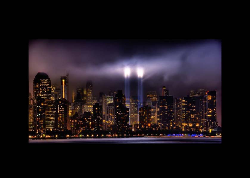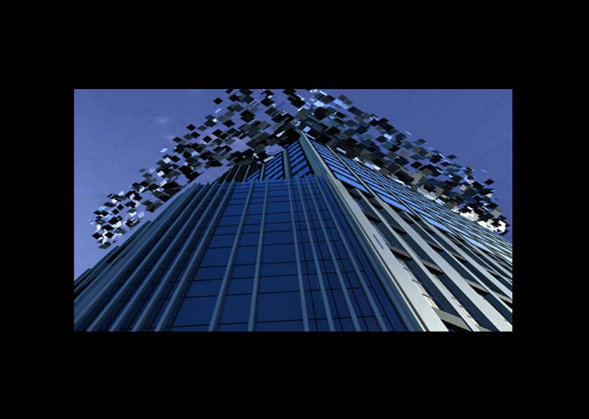 鏡頭推出,一個個方塊的燈光隨著音樂在建筑上躍動。