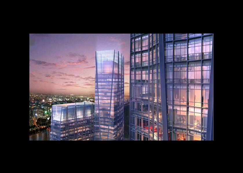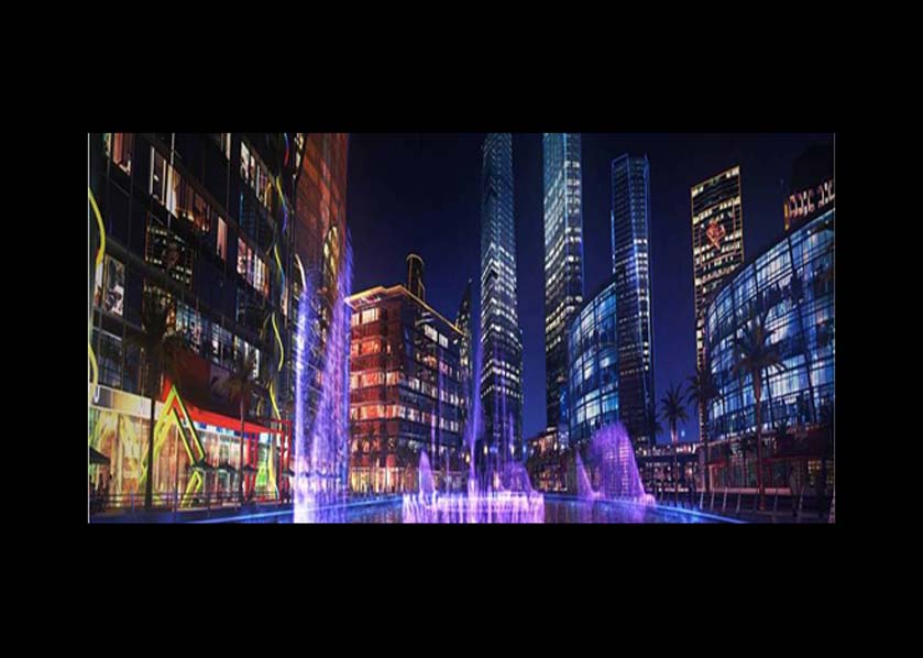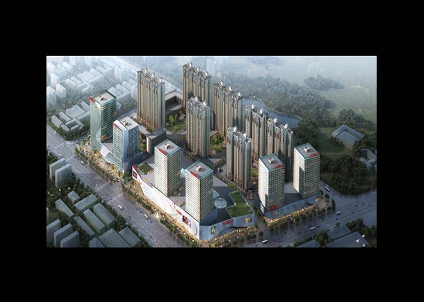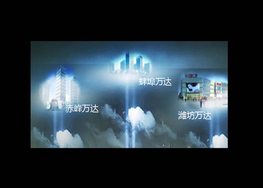 在光帶的頂端,顯現(xiàn)出萬達(dá)的在這個城市的綜合體建筑,