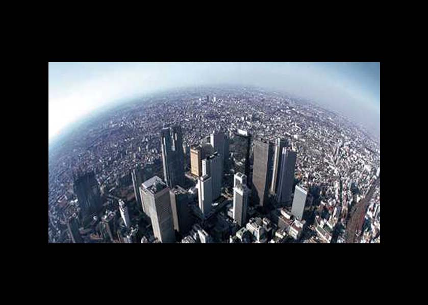 鏡頭躍起至至建筑頂端,俯瞰整個城市的繁華。