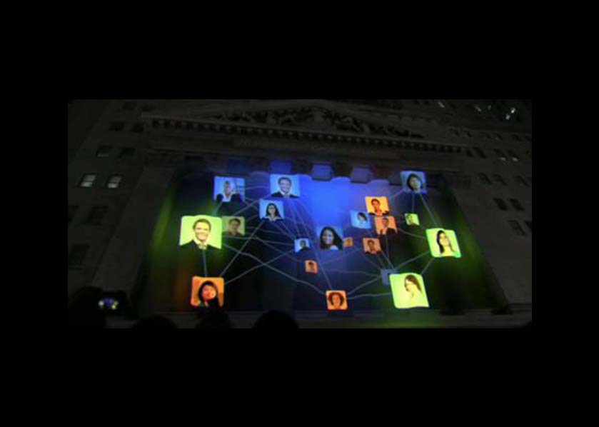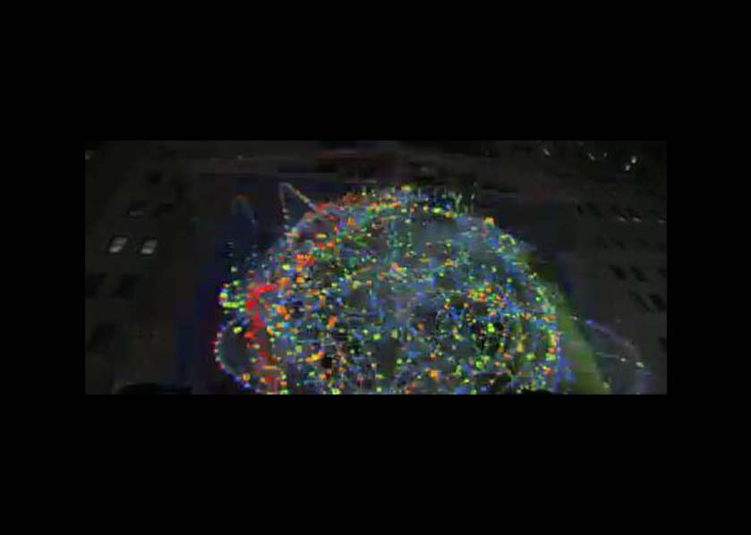 鏡頭拉開,網(wǎng)絡(luò)不斷的旋轉(zhuǎn),匯聚成一個球狀,寓意著萬達(dá)未來影響全球的影響力。