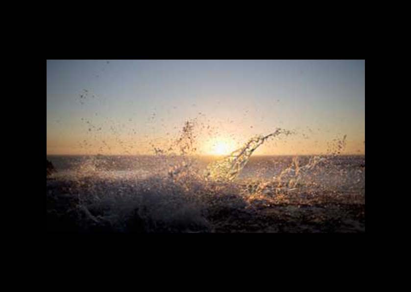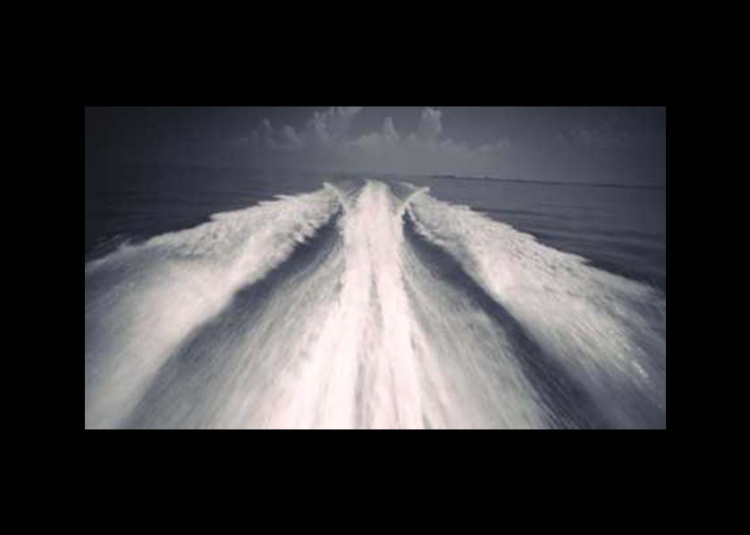 鏡頭低空飛行,水面下有什么東西在急速前行,水波涌動,鏡頭跟隨。