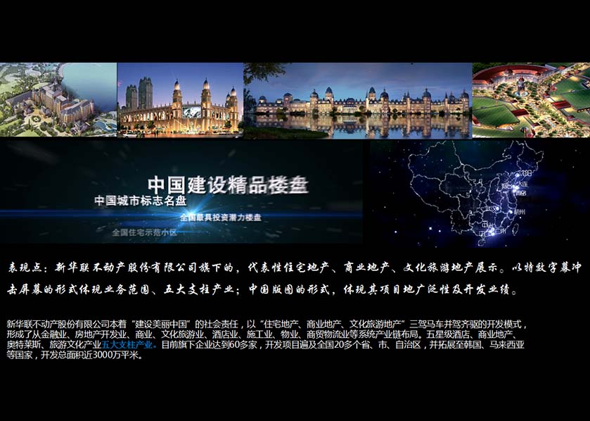 新華聯(lián)不動(dòng)產(chǎn)股份有限公司旗下的,代表性住宅地產(chǎn)、商業(yè)地產(chǎn)、文化旅游地產(chǎn)展示。