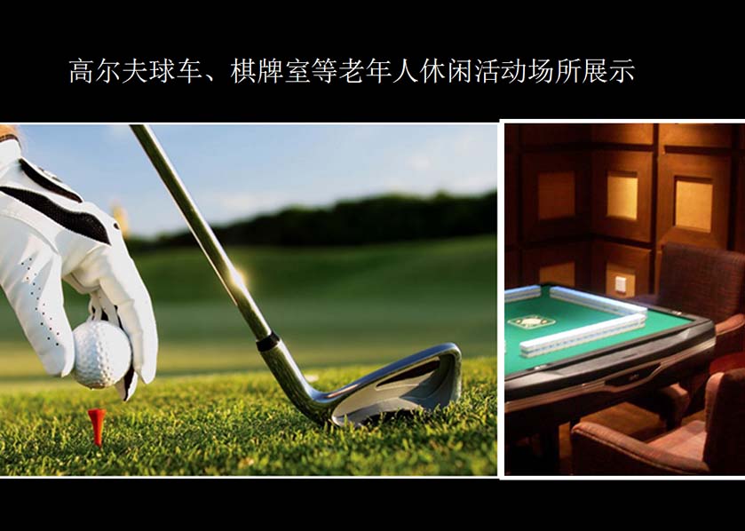 高爾夫球車、棋牌室等老年人休閑活動場所展示
