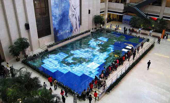 1、不同于傳統沙盤,各種小的屏幕拼接起來展示有番風景。