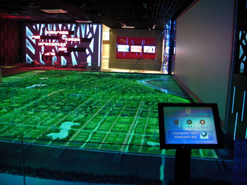 多媒體電子沙盤產品有很多的優勢,與傳統的沙盤相比,它的功能更豐富,擴展性更強大,功能豐富指的是,它加入了很多的高科技元素,比如由計算機與定制的控制箱組成的燈光控制系統,通過程序與多媒體演示系統的配合,可以實現同步控制模型上的燈光狀態,或閃爍或流動。模型燈光遙控系統通過無線電遙控,PDA掌上電腦或激光筆與定制開發的接收控制箱配合,可以實現控制幾十甚至幾百路模型燈光,實現單點亮、組合亮和全亮等燈光效果。使用搖頭燈、掃描燈、激光燈、LED燈等舞臺燈等可以渲染和突出模型的演示效果,當沙盤上的某部分燈光亮時,上方懸掛的搖頭燈可同時向此部分打出相應的光圈,或是為渲染氣氛在沙盤上打出多種花紋和色彩,演示效果光彩奪目,栩栩如生。紅外人體檢測也是多媒體電子沙盤中包含的內容,也是一套用于大型沙盤模型的自動語音解說方案,在觀眾走到紅外開關區域發送地址信息給自動語音解說模塊,自動語音解說模塊開始播放相應解說詞,如果觀眾離開,播放將停止,等待下一位觀眾。觸摸屏一體機一般用來方便講解員、參觀者調看觸摸屏上所演示的內容,但將觸摸屏一體機的計算機信號與音頻信號接入到等離子電視或投影儀及功放音箱上,在電視屏幕上就可同步顯示演示的文字、圖片、視頻、動畫、解說等內容了。激光筆無線控制,激光筆沙盤控制是在沙盤的具體區域安上相應的接收器,講解者用激光筆指向沙盤的某個區域時沙盤上的燈光馬上隨之發光,同時相應的解說詞配合燈光演示。升降局部沙盤可實現多媒體電子沙盤的多層次展示,可使項目原來不在可視范圍內的內容呈現給參觀者。