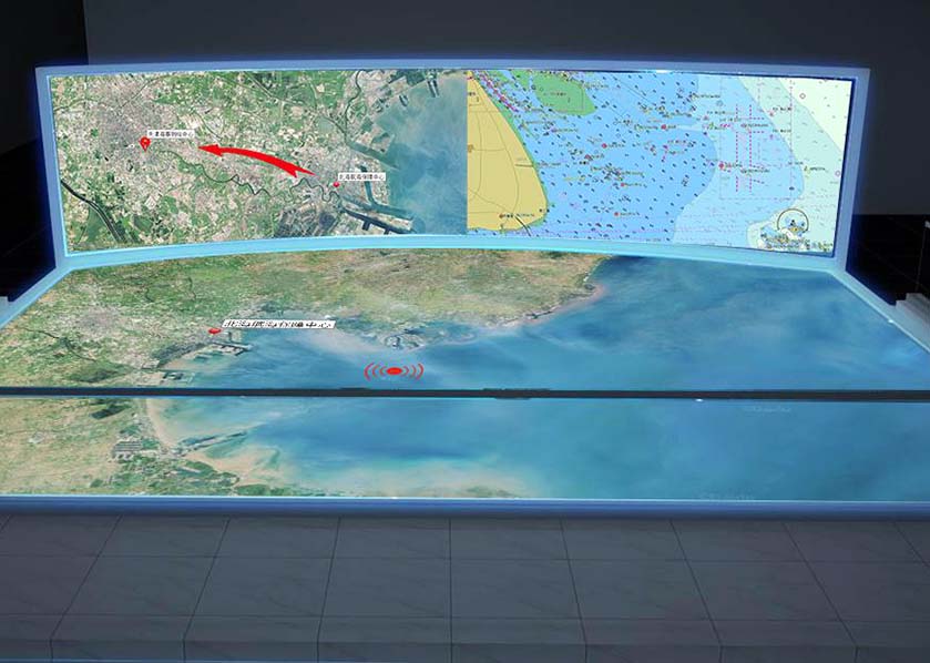 表現闡述:通過觸控中心、弧幕和沙盤相結合,更加直觀、形象展現航海保障海事測繪應急搶險任務位置及交接流程。 -