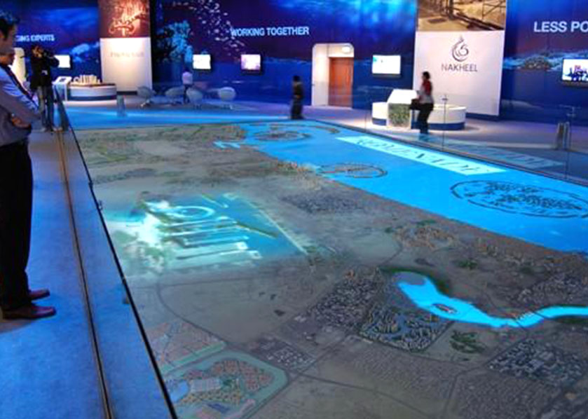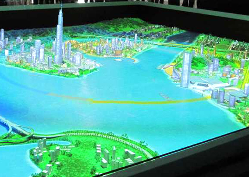 表現闡述:通過控制系統當用手指輕輕點擊觸摸屏上的相關區域時,沙盤模型上會在相應位置的二極管開始閃動,同時觸摸屏上開始播放該熱區關聯的三維動畫畫面,結合同步的大屏幕畫面,可以全方位的展示實施方案過程。 -