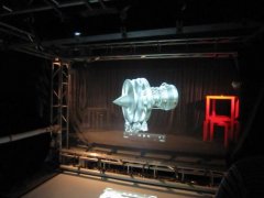 幻影成像就是通過斜置45度的玻璃來反射底部或頂部的圖像 (該圖像可以是經(jīng)過改裝的電視機(jī)所顯示的圖像也是可是投影機(jī)投射的畫面)。相比較而言,幻影成像的技術(shù)要簡單明了得多。