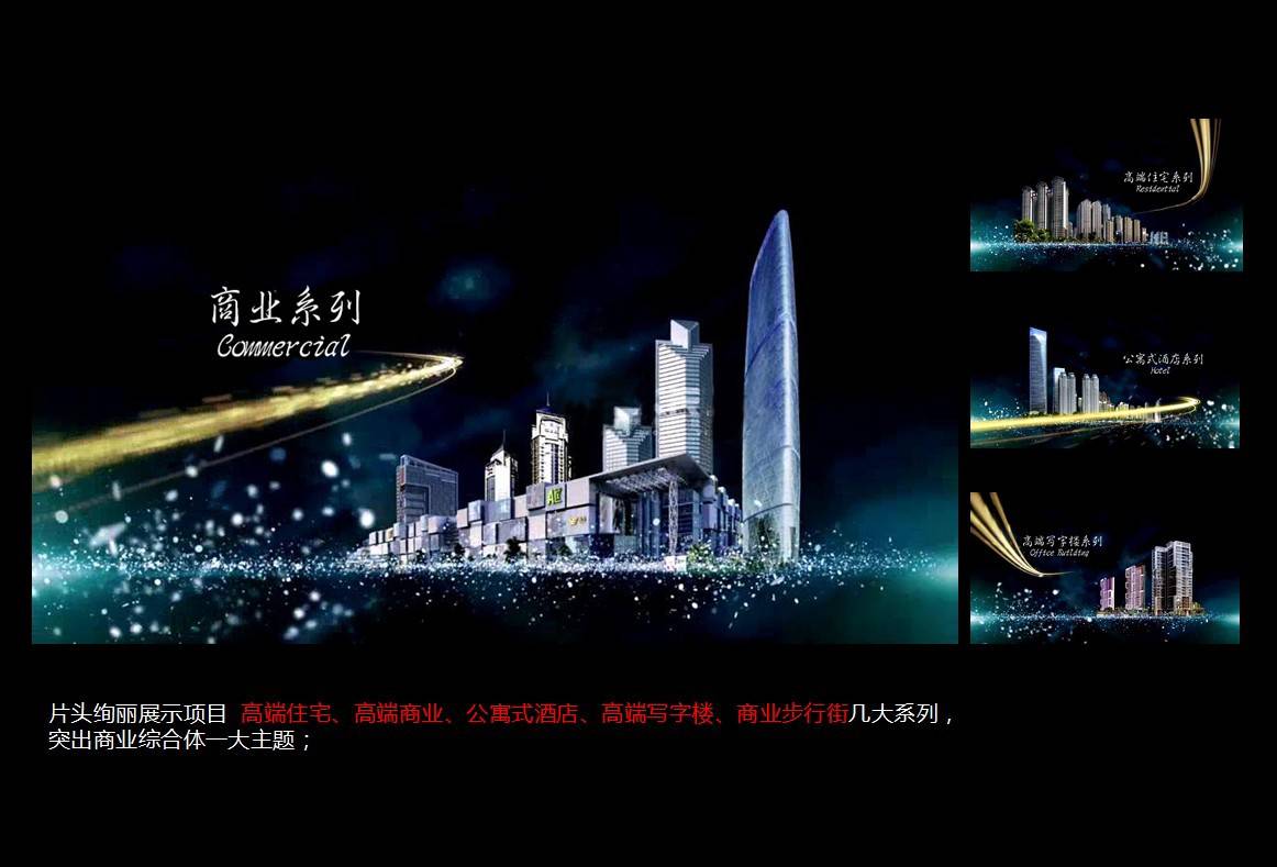 片頭絢麗展示項目 高端住宅、高端商業、公寓式酒店、高端寫字樓、商業步行街幾大系列,突出商業綜合體一大主題;
