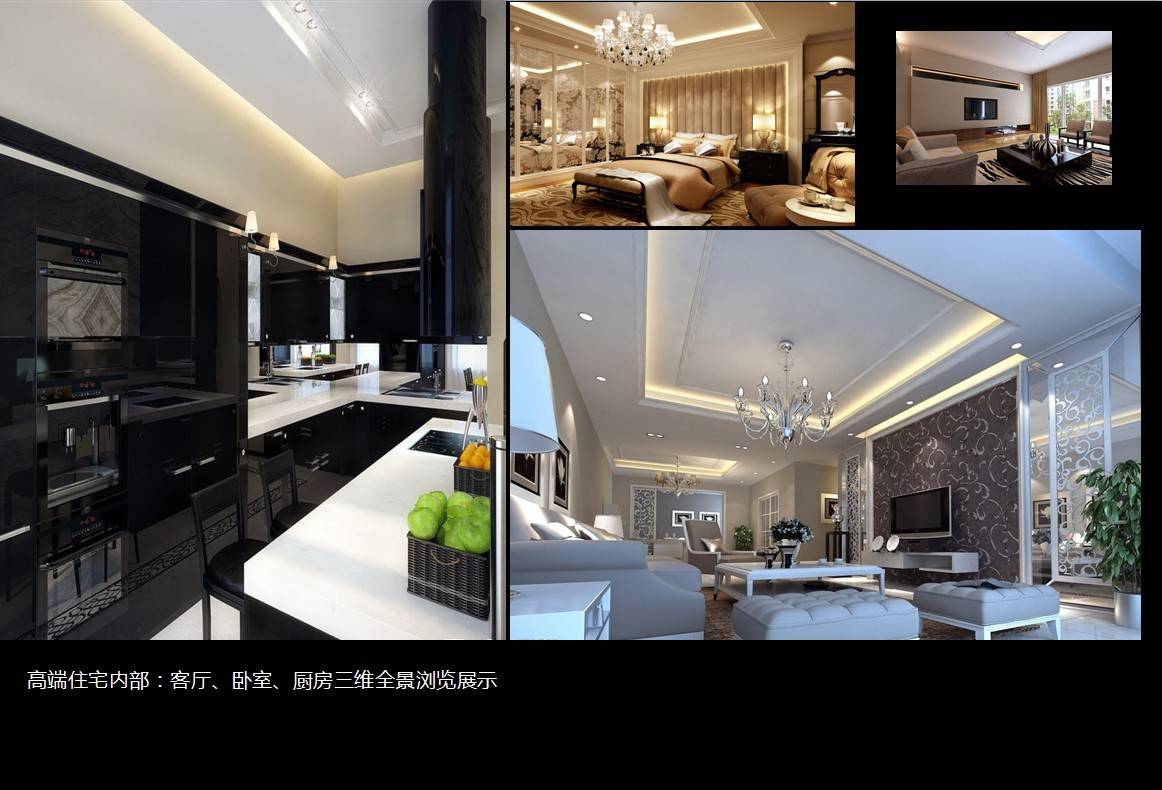 高端住宅內部:客廳、臥室、廚房三維全景瀏覽展示