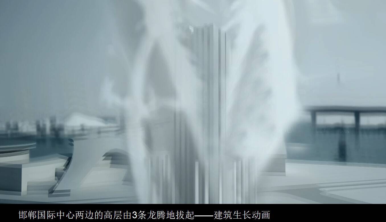 邯鄲國際中心兩邊的高層由3條龍騰地拔起——建筑生長動畫