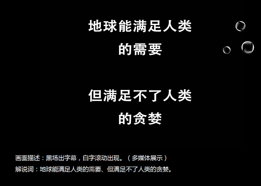 解說詞:土地干涸、河水斷流、土壤沙化、海洋污染、冰川融化。 -