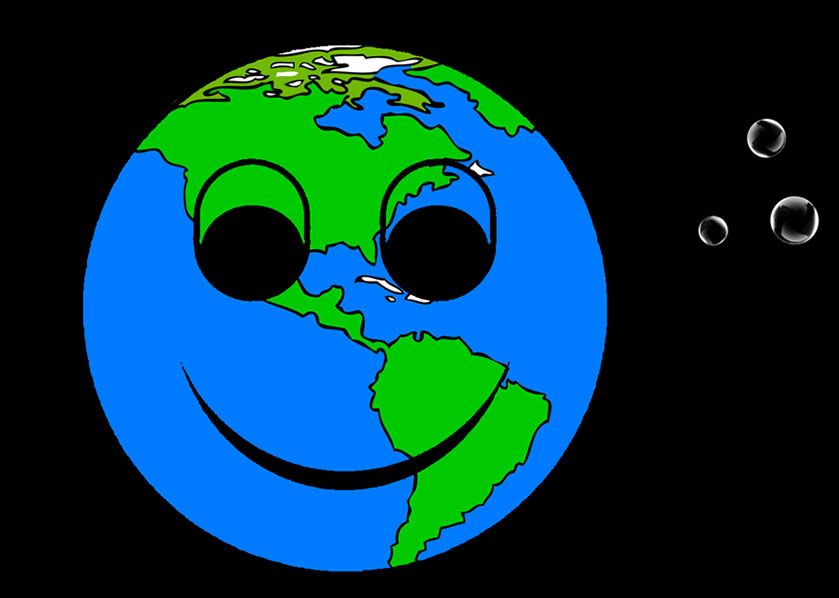畫面隱現卡通地球露出笑容。
