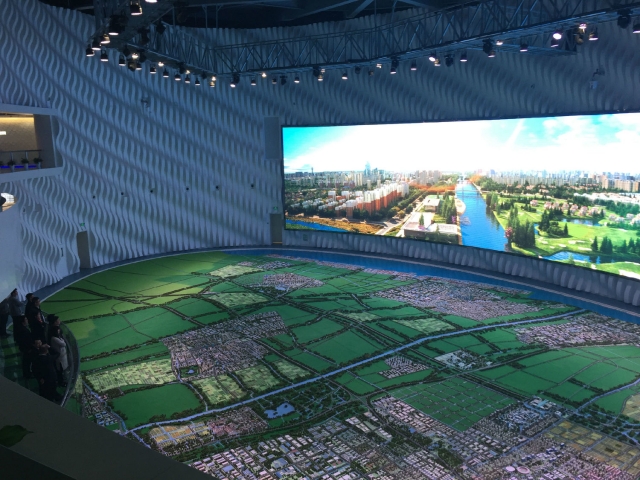 2、利用大屏幕無縫拼接融合技術,環繞實體沙盤及沙盤天花區域拼接成大型連體幕,利用高保真音響及大視野精彩視頻,給參觀者帶來極大的沉浸感與視覺沖擊力。