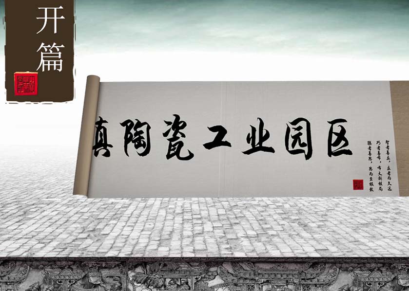 由卷軸拉開,顯示“景德鎮(zhèn)陶瓷工業(yè)園區(qū)”幾個(gè)大字開篇 -
