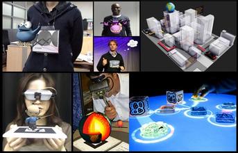 增強現實技術與虛擬現實(VR)技術類似,它把現實中并不存在的實體信息(視覺信息、聲音、味道、觸覺等),通過科技模擬仿真 后疊加到現實環境中,達到超越現實的感知體驗。該技術廣泛應用于醫療、軍事、工業維修、藝術、娛樂、旅游、展覽展示等。