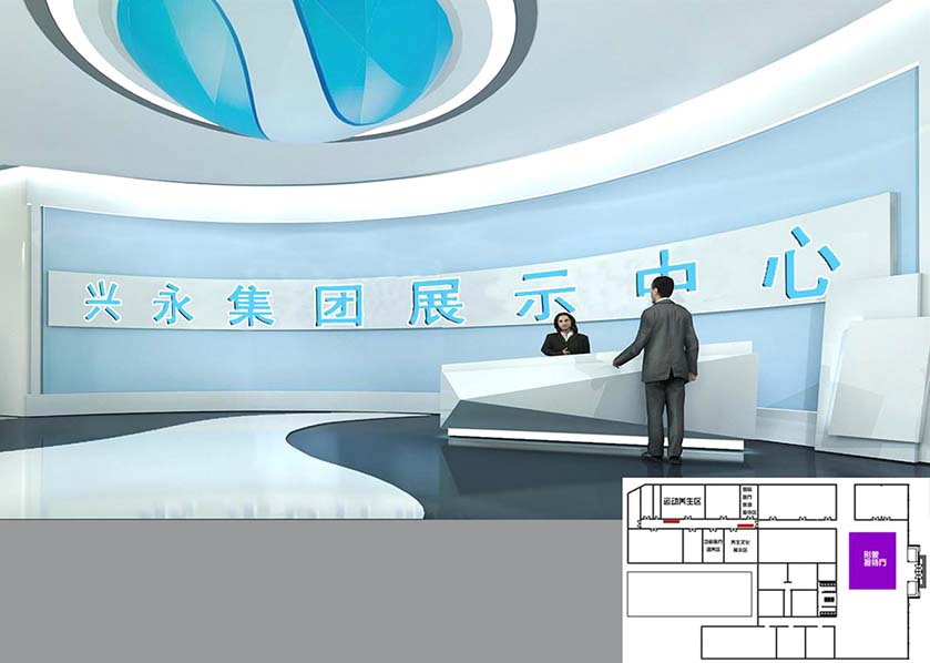空間設計風格簡約流暢,以展示國際化,規劃現代化,互動科技性為設計思想,同時穿插了興永企業的文化特色元素,打破傳統的規劃展示模式,演繹出新型的展示設計形式及精彩體驗模式。本展館色調以白為主,兼顧各展區特色的一個具有現代,智慧,創新并存的展示空間氛圍。