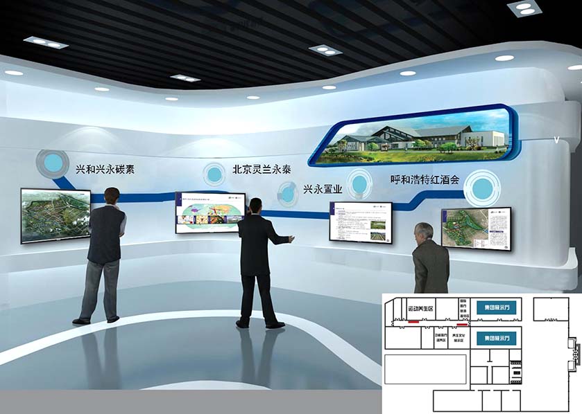 展示形式:燈箱展板+多媒體播放+感應等離子 -