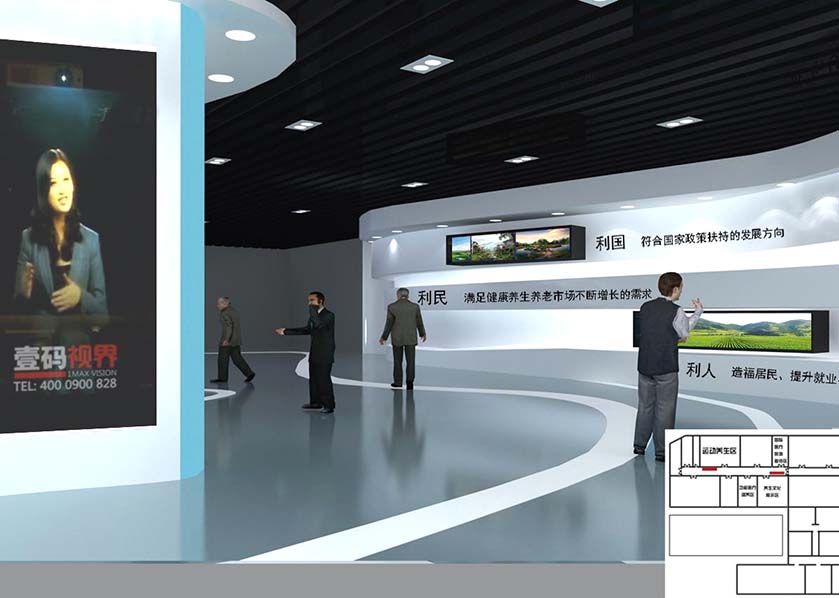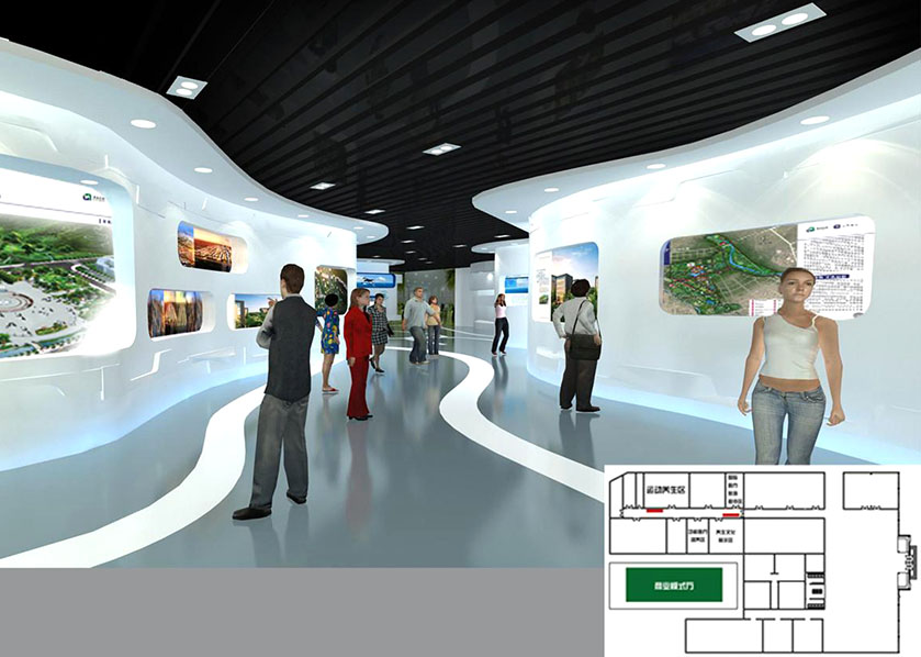 當參觀者走近時,同時計算機會控制人 物向觀眾打招呼,并向觀眾介紹展廳分 布及各主題展區概括介紹等內容。 該展示形式非常能夠吸引客戶,在該廳 起到點睛之筆。