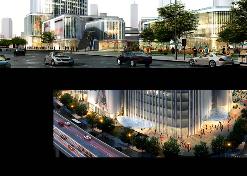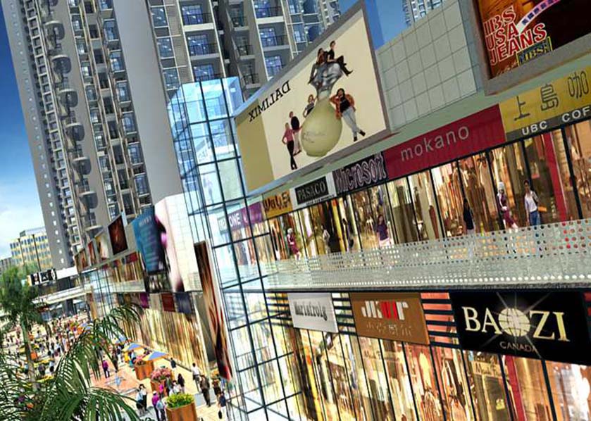 鏡頭推進商業區,形成哈東大規模集購物、餐飲、娛樂休閑為一體的多層次商業中心。