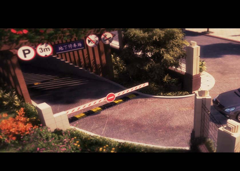 鏡頭跟隨豪車,豪車駛入地下車庫入口