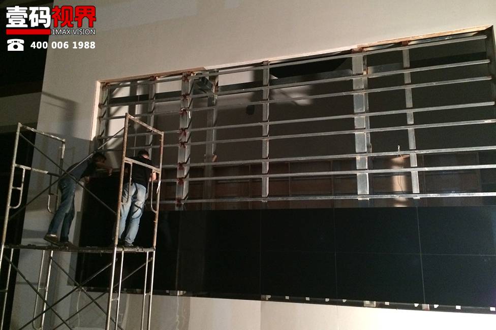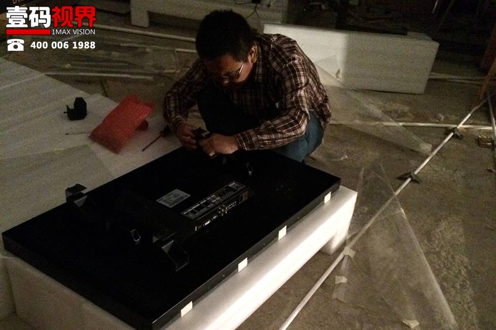 實拍:壹碼視界工作人員進(jìn)行液晶屏幕拼接。